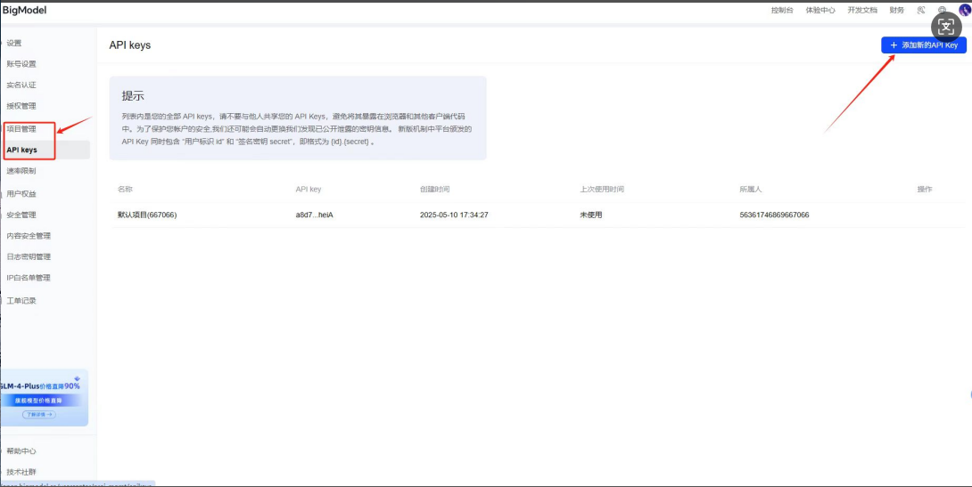 点击【新建API秘钥】,然后随便填写一个API-KEY的名称。