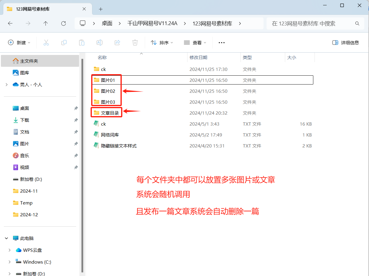 在发布之前我们先把图片、文章等素材发放到【123网易号素材库】中相对应的文件夹中,(你也可以根据自己的需求创建文件夹)。